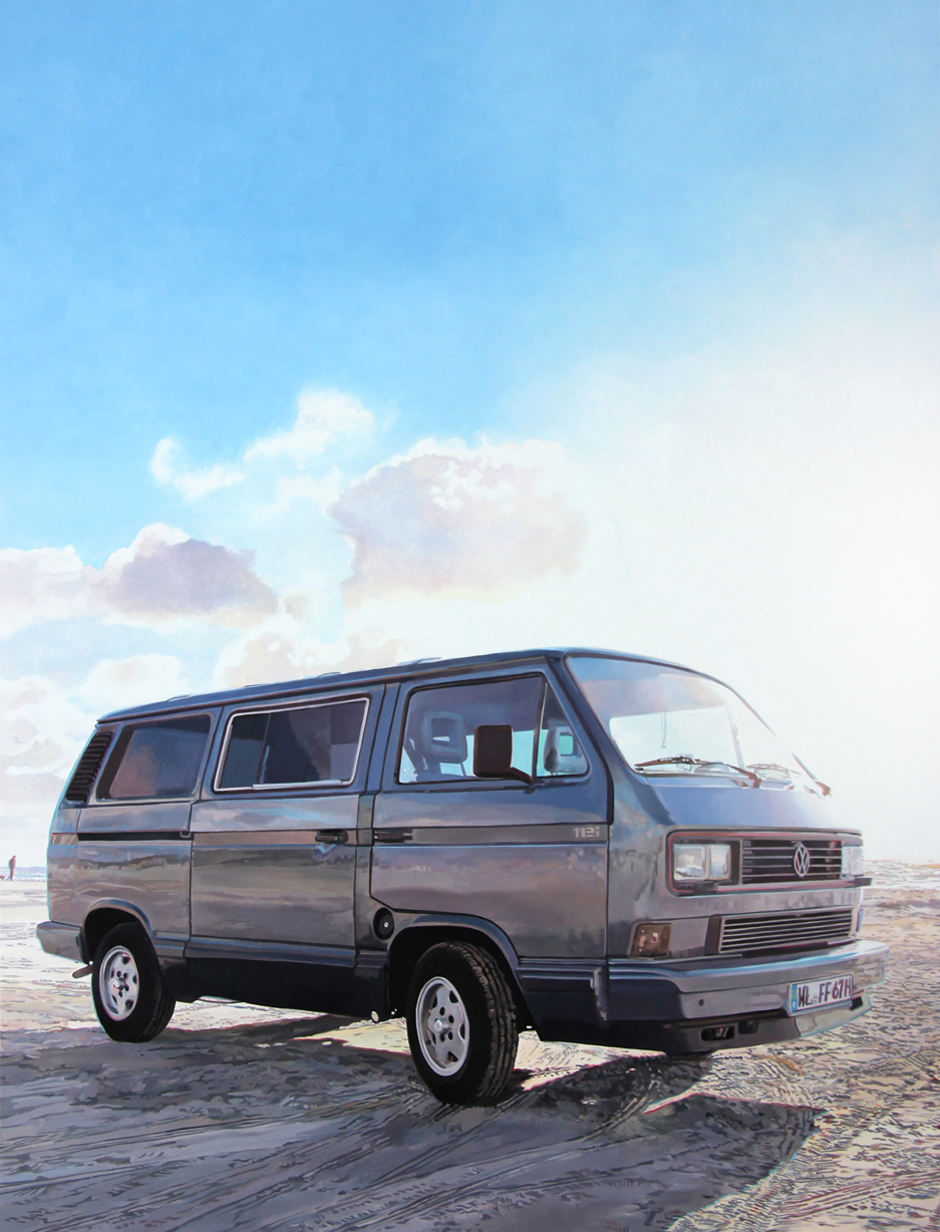 VW T3 am Vejers Strand, Öl auf Pappe, 65 x 50 cm, 2025